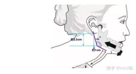 耳垂至下頜角的垂直距離小於等於2.5cm,下頜角大於等於120°