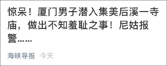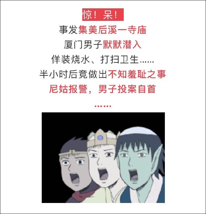《驚呆!廈門男子潛入集美后溪一寺廟,做出不知羞恥之事!尼姑報警……》