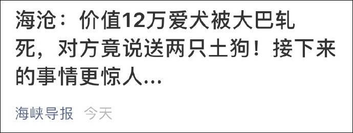 這件事情,事主楊先生陪自己的愛犬跑步,沒有栓繩;愛犬被車撞死了,就打算向司機索賠12萬。這顯然是有點獅子大開口了,結果……這家媒體在不採訪大巴司機的情況下完全偏向狗主人,一昧地譴責司機?什麼邏輯!