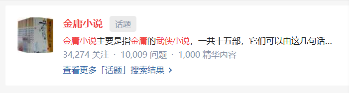 以知乎為例,關於金庸小説這個話題,一共有上萬個問題,上百萬次的回答討論,出現了1000個以上的精華回答,萬贊內容比比皆是。