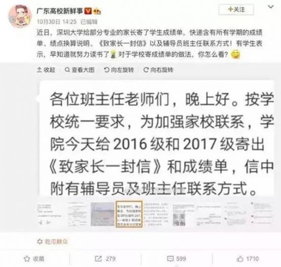 最近,深圳大學給學生家長寄去了成績單,而且還是包郵的,學生朋友圈頓時炸鍋了:
