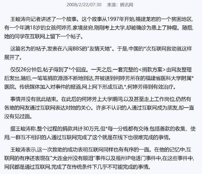 網上救助,我們可能是第二例。網上募捐救助成功,我覺得,我們是當然不讓的中國第一例。