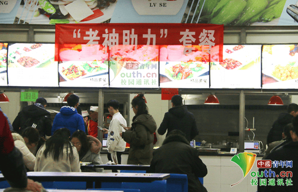 “之前買飯和加菜需要分別排隊,耗費時間長,用餐時段相對比較擁擠。”當記者問到推出“考神助力套餐”後的變化時,工作人員餘存淵説,“如今推出套餐,同學們不需要分別排隊,幫助他們節約時間,也減少了擁擠。”