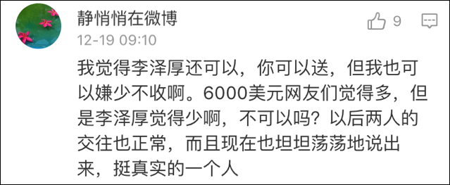 有網友認為可能對於李澤厚來説的確是小錢,李澤厚看不上也是正常