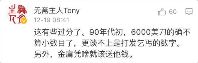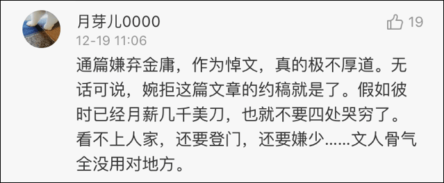 怎麼説呢……言辭之間都是在很認真地指責金庸小氣,不該“像打發乞丐一樣打發他”,過了二三十年還將當時的細節記得清清楚楚,看出來李澤厚先生是一直為此耿耿於懷。