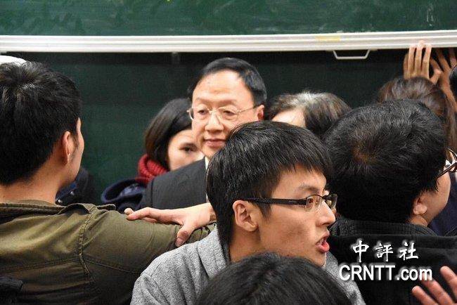 鬧事現場,江宜樺被支持學生和抗議學生激烈衝突包圍在其中