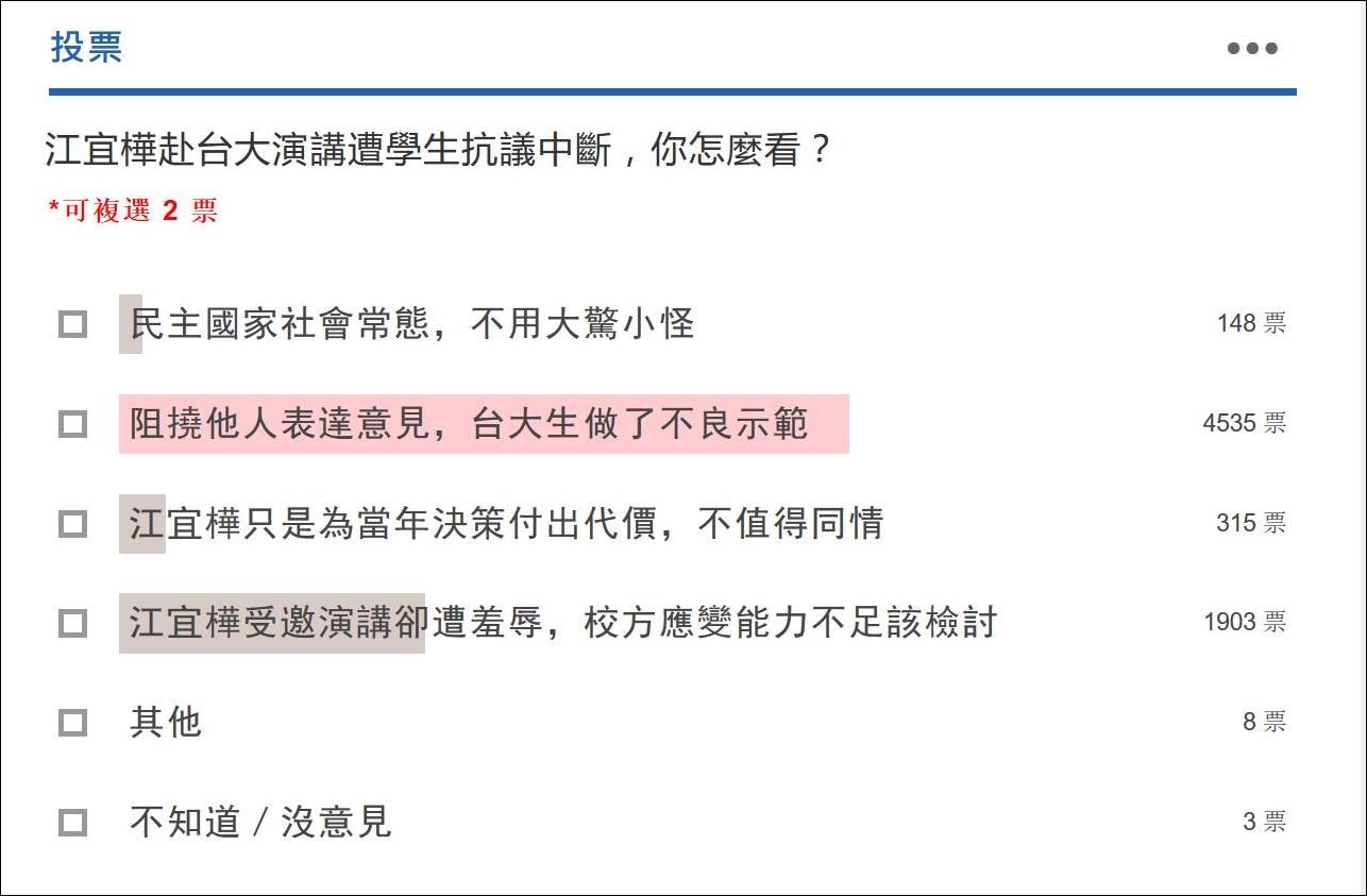 聯合新聞網:台灣網民對於此事的看法投票截圖