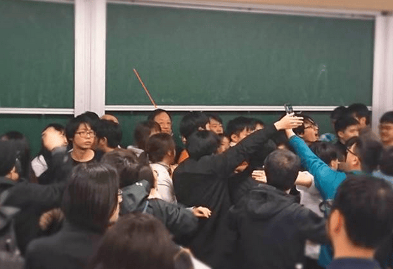 有抗議青年衝入擾亂了江宜樺在台大的演講