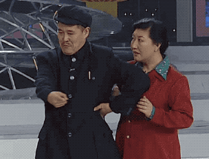 台詞之外,趙本山的表演也堪稱教科書級。舞台上的他有各種小動作,盤腿、上炕、拋眼神……表演功底之深,一個動圖就能顯示出來: