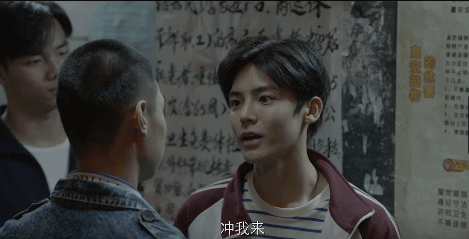 他一登場就自帶0.75倍速慢放和柔光特效,擼着頭髮揹着鋼管,還伴隨着楊夕小聲的“好帥啊”的BGM。