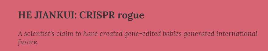 以下為《自然》雜誌對賀建奎的特寫,摘譯如下: