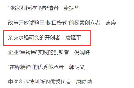而為我國雜交水稻事業作出巨大貢獻的袁隆平,被評為“雜交水稻研究的開創者”。