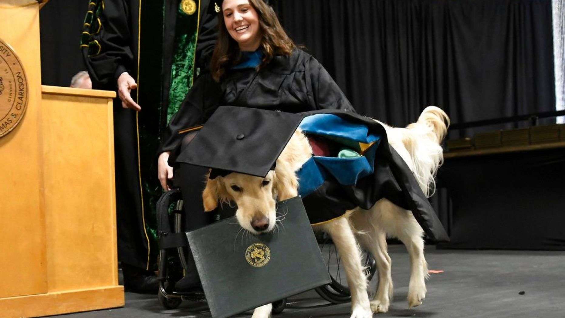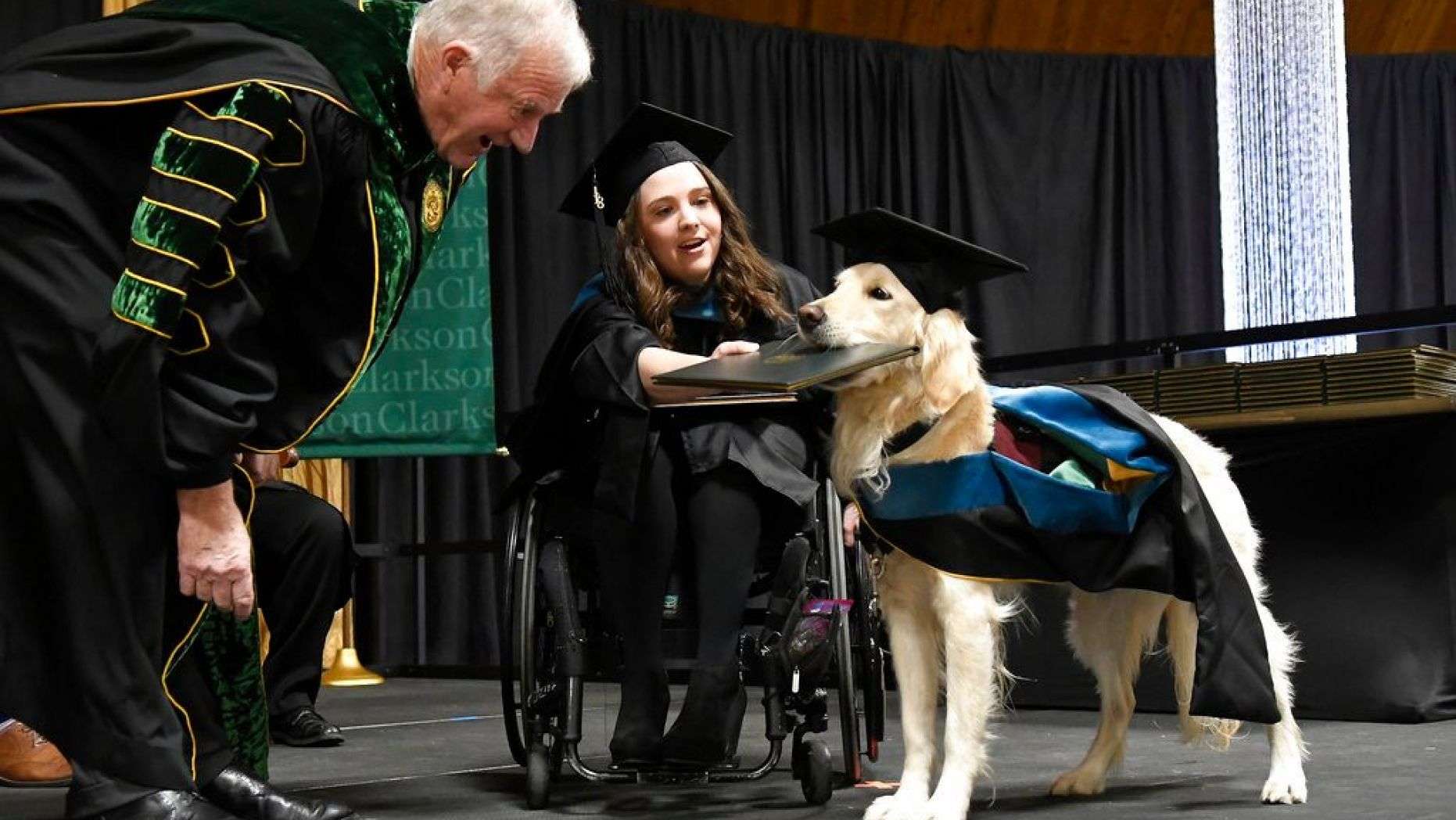 身患殘疾的Brittany Hawley今年從紐約克拉克森大學畢業,獲得碩士文憑。她的服務犬也被學校授予榮譽碩士學位。