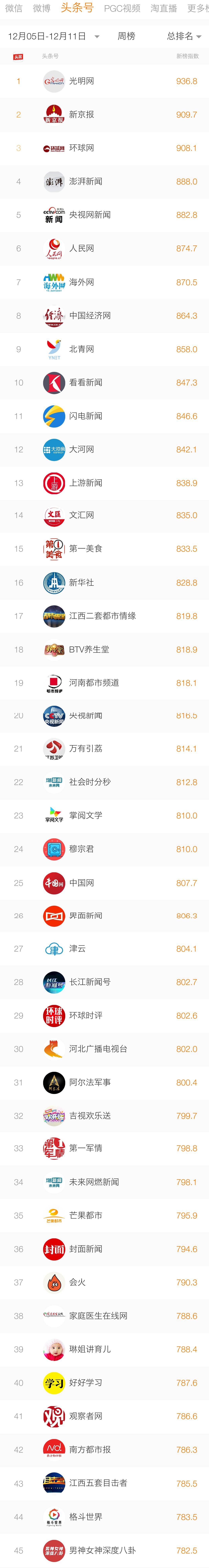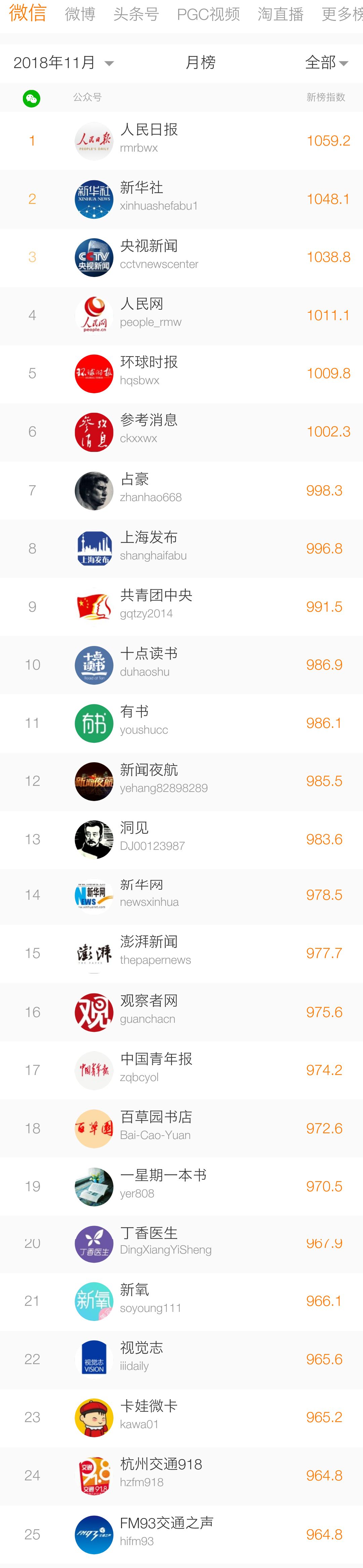 以下排名來自內容數據服務提供商“新榜”官網newrank.cn