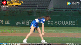 雖然大陸沒什麼開球式傳統,但也不能阻礙有潛力的少女往國外發展,比如那個柔韌度100%的宇宙少女的成員程瀟,2016年她在水原棒球聯賽上開球,還順便表演了一個側後空翻: