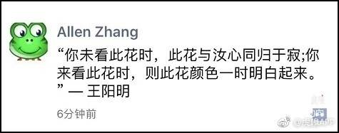 對於這個開屏動畫,張小龍發佈朋友圈,引用了一段王陽明的話: