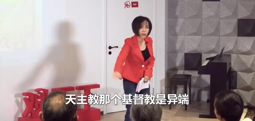 黃智賢老師疑惑地説:“哎,我説你們煩不煩啊,你們天主教和基督教不是拜同一個上帝嗎?”他們回應稱“不一樣,不一樣,不一樣,天主教那個基督教是異端!”“天主教是異端。”