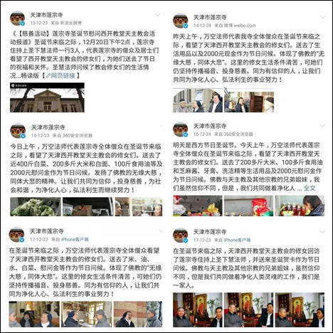 有網友透露説,天津蓮宗寺和西開教堂天主教會在聖誕節前夕互相拜訪已經是多年的傳統。根據微博的信息顯示,該寺最早在2013年就開始公佈與西開教堂天主教會互相拜訪的消息,這個傳統一直持續到今年。