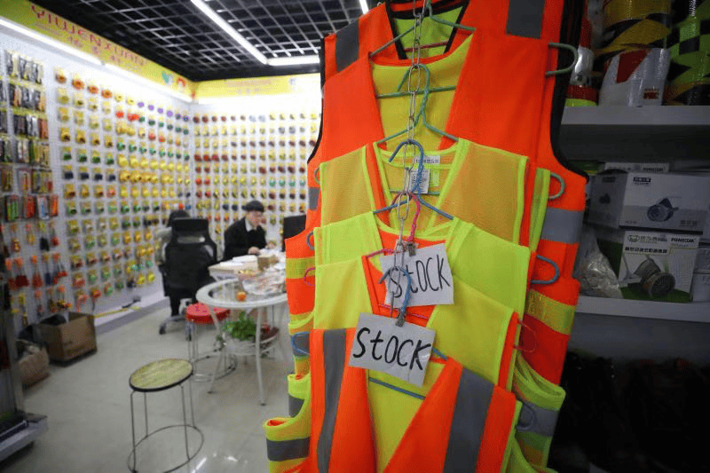 (義烏國際商貿城中的反光馬甲。楊輝攝)