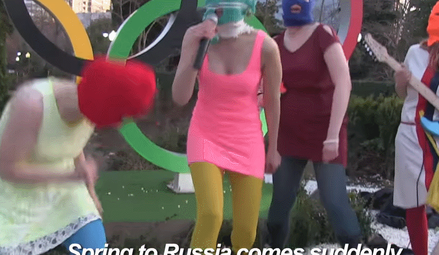 2014年索契冬奧會,Pussy Riot在賽場門口唱歌抗議普京