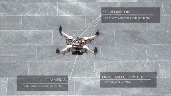團隊説,無人機的變形決定,完全依賴機身搭載的傳感器和計算機,沒有藉助任何外在的動作捕捉和計算設備。