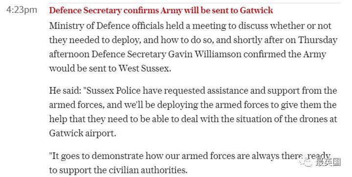 4:23分,防禦秘書長確認,陸軍部隊已被派往蓋特威克機場。
