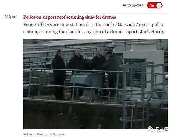 13.58分,來自Sussex的警官團隊和智能“站在蓋特威克機場的房頂,對上空進行檢測掃描,檢查無人機的行蹤”。