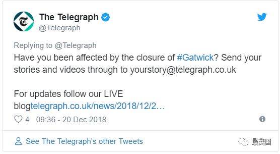 英國電訊報發推特“問候大家”:今天你被蓋特維克影響了嗎?