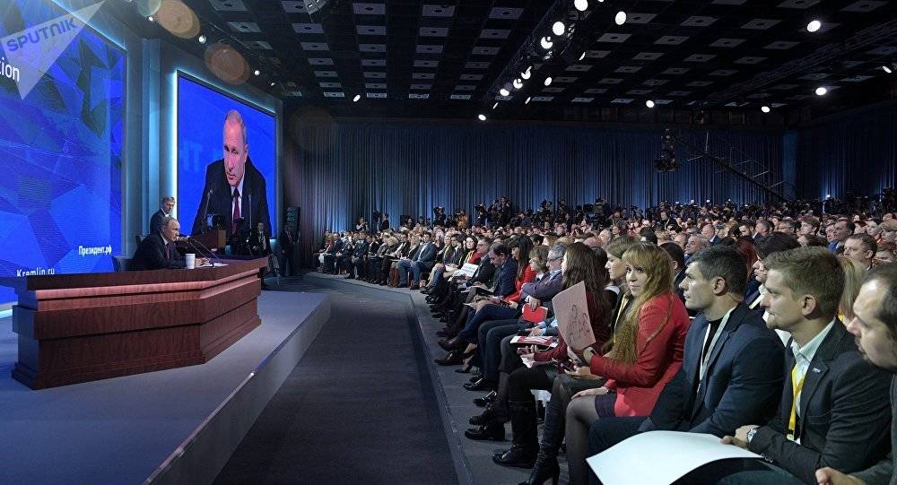 當地時間20日12點,俄羅斯總統普京在莫斯科國際貿易中心大廳舉行年度大型記者會,回答來自俄羅斯聯邦級媒體、各地方媒體及外國媒體的1702名記者提問。