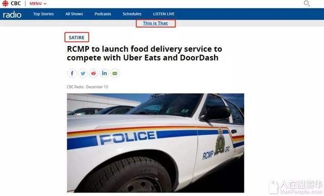 仔細看下面CBC的截圖,這裏有一個小標寫着:“諷刺(Satire)”,還有一個欄目的名字“This is That”