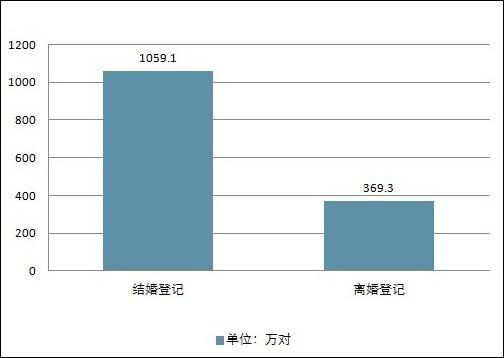 藍色柱狀:結婚數據;橙色柱狀:離婚數據