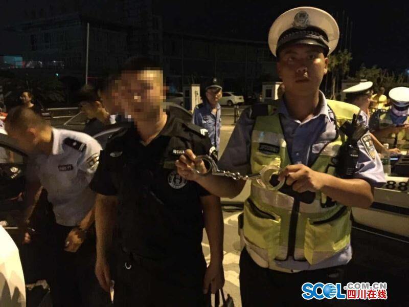 據交警直屬四大隊民警介紹,當晚大隊民警在高新區石橋鋪進出口加工區附近檢查酒駕時,一輛車牌為川B35***的私家車閃爍警燈闖過紅燈,並一路鳴着警笛逆行向石橋鋪大橋快速行駛,前方民警得知消息後將該車輛攔下。