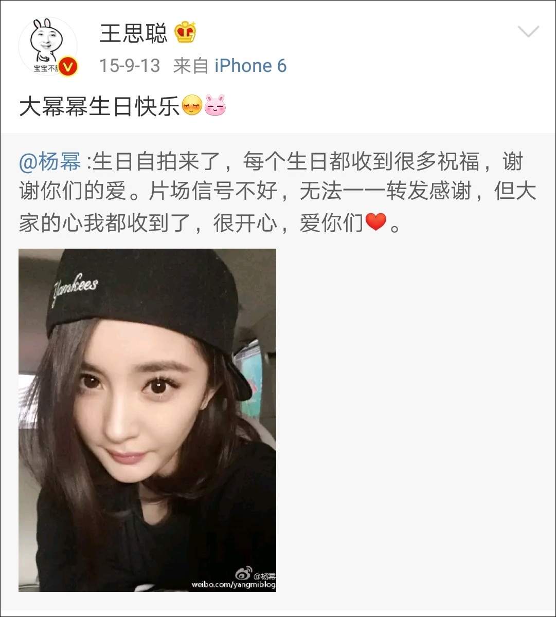 除此之外,王思聰與楊冪在微博上下的互動都非常多。