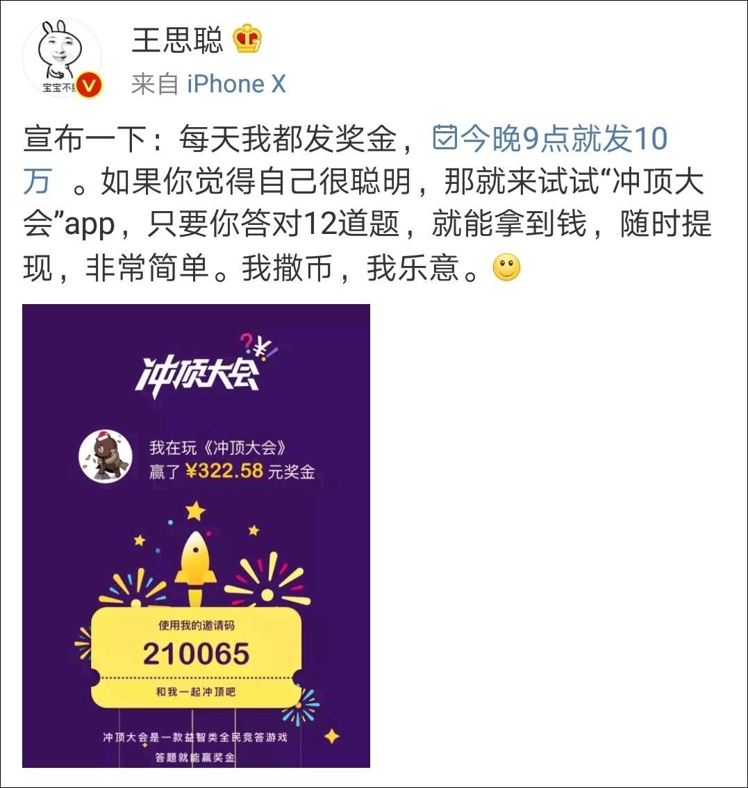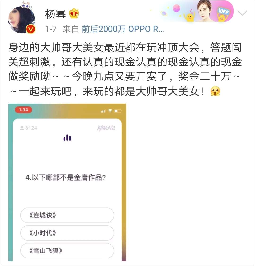然後,王思聰年初投資了一款當紅益智遊戲,楊冪直接幫忙打了廣告。要曉得,這同樣也是楊冪第一次在微博上幫人打廣告。