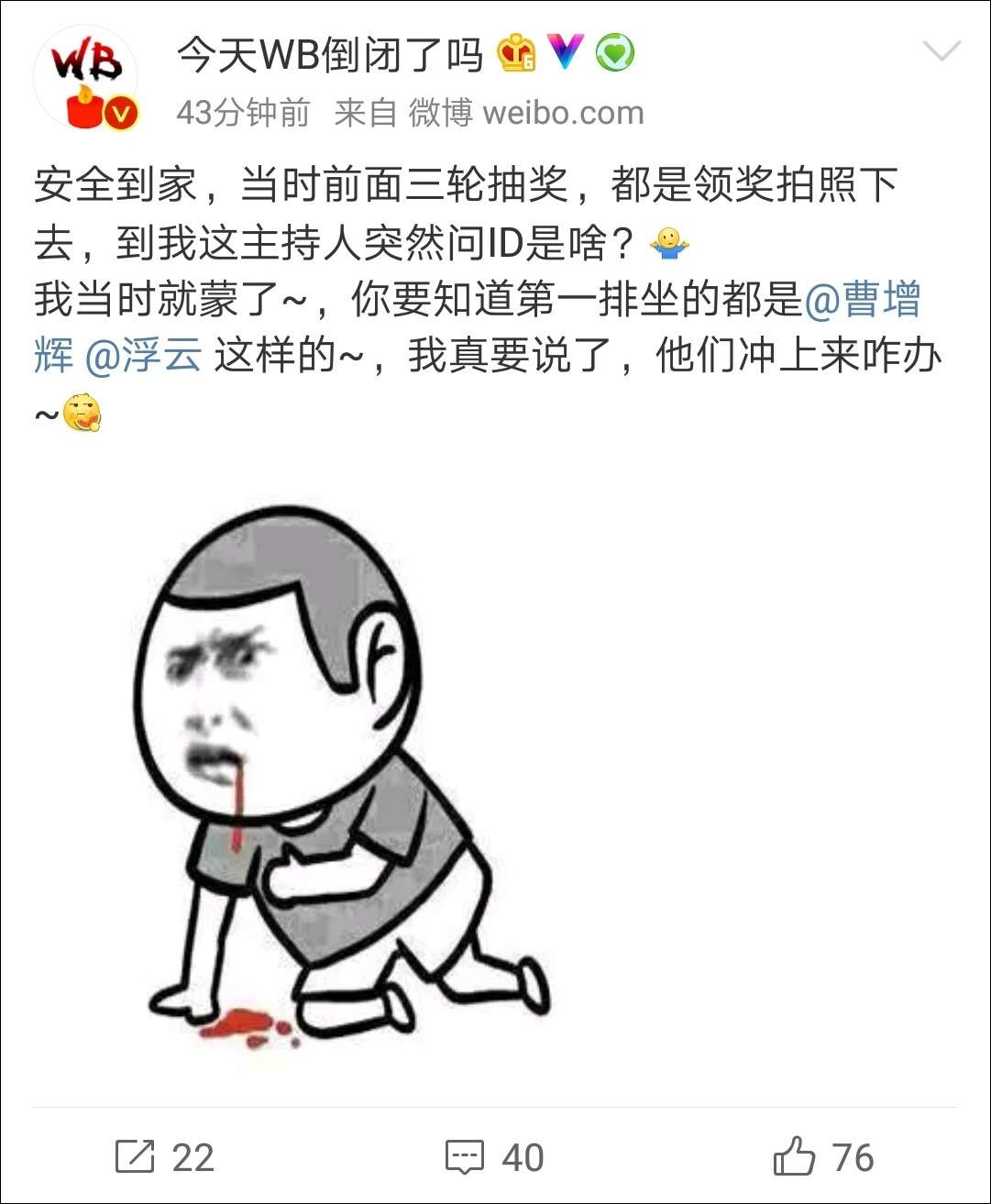 這位中獎大哥的微博暱稱的確是不適合在台上説,感覺像是在砸場子!