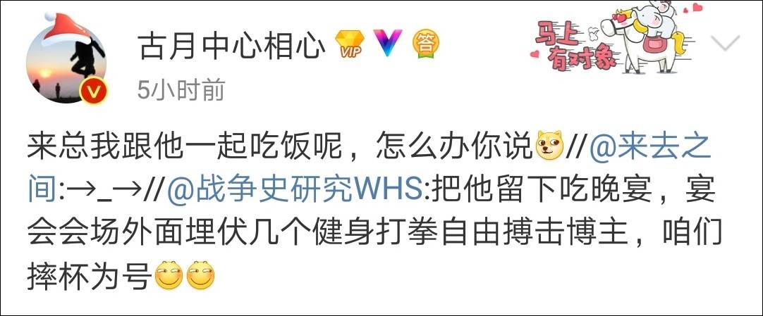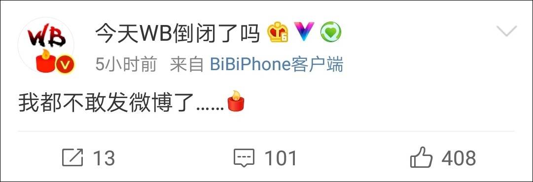 也有可能是在席間,“阿忠伯”代表微博方面與“今天WB倒閉了嗎”進行了一番親切而深入的會談,推杯換盞之後,就此“詔(招)安”了。