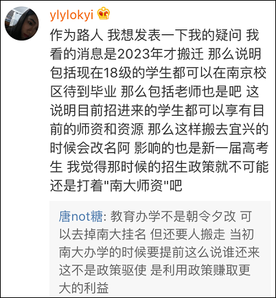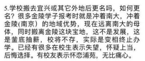 很多金陵學子報考時就是衝着南大,衝着南京的地域優勢,現在遠離南大的母校,同時搬離金陵這塊寶地,這不是發展,這是釜底抽薪……
