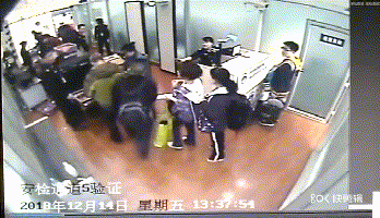 通過下面視頻可以看出,當時安檢通道內突然闖入一名男子企圖衝闖安檢通道,被驗證人員阻攔,在交涉過程中第二次企圖衝闖通道,被通道內安檢員果斷採取強制手段將其制服。