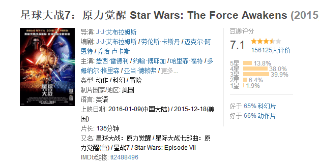 而2015年北美聖誕最重磅電影《星戰7》,國內也沒有享受同步上映的待遇,老老實實挪到元旦之後。雖然即使這部電影同步上映,其實國內票房也沒幾個錢。