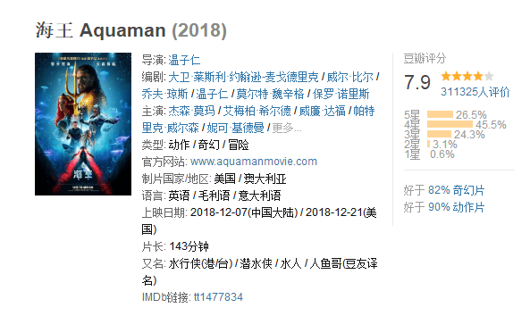 至於今年北美聖誕節最重量級的2部影片呢,一個是《海王》,國內給挪前面了。