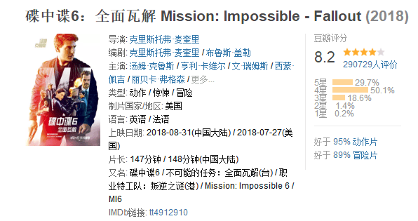 春節檔和國慶檔是中國特有國情在此,好萊塢大片這個點也沒有啥大片,咱們就不提。但是暑期檔和年底聖誕賀歲檔,好萊塢都是有大片的,那國內上映,要麼你提前點,要麼你延後點,反正7月底前後2個星期,以及12月中下旬,基本上看不到好萊塢大片。比如今年暑期檔《碟中諜6》北美是7月底上映,國內就延期到8月底。