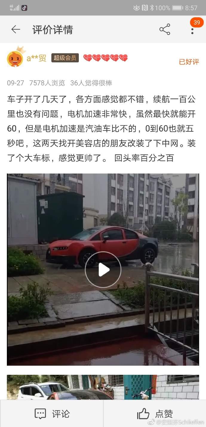 果不其然,在這家淘寶店裏,最近這一個月,就賣出去了56輛車,買家評論裏的好評率更是高達100%。而且,每個評論都是那種活潑生動、內容詳實的生活實例,和隔壁那種400多條全是複製粘貼的完全不一樣。
