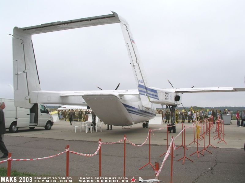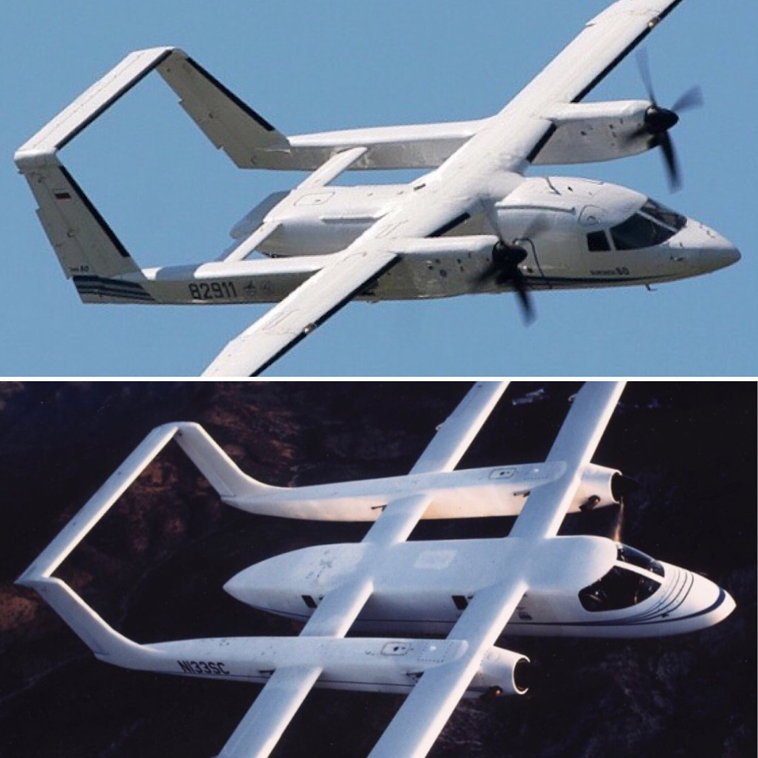 串列翼也可以用於短距起飛的小型運輸機,如Scaled Composites的ATTT(下)和蘇霍伊的蘇-80(上)