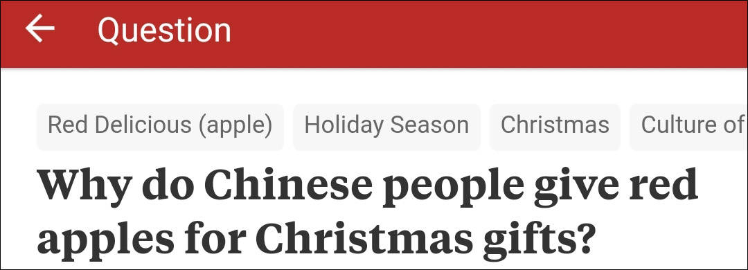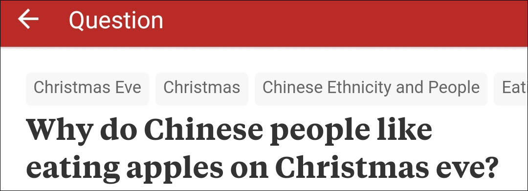 在被稱為英文版知乎的問答網站Quora上,有外國網友提出這麼一個問題,為什麼中國人喜歡在平安夜這天吃蘋果呢?