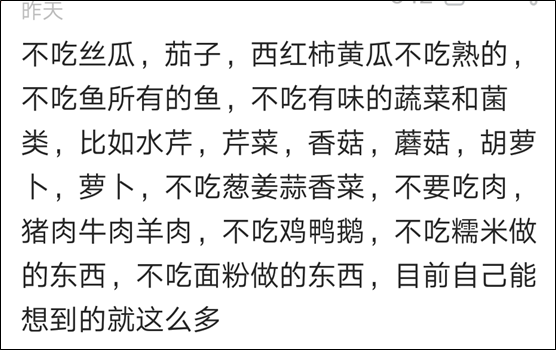 挑食的極致是什麼?是別問我不吃啥,問我吃啥!