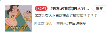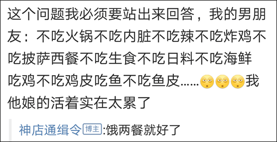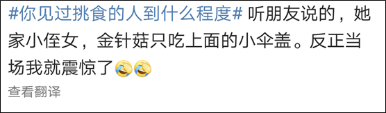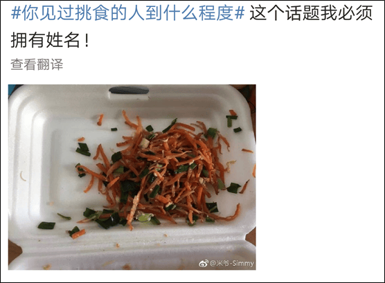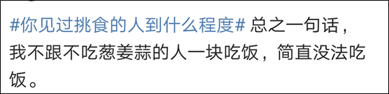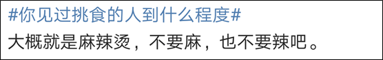 今天的微博熱門話題榜第一名甚合我心:你見過挑食的人到什麼程度