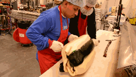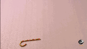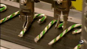 通過一個旋轉裝置將一端扭轉180°,枴杖糖就製作好了。