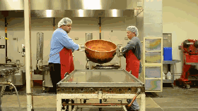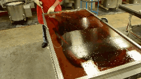 在一些生產規模較大的企業中,化糖採用的是夾層鍋,並且會在夾層鍋上方加上密封真空鍋蓋,採用蒸汽化糖,並通過製造真空環境降低糖的沸點。這樣製作出來的糖膏透明度更好,也不會因為焦化變黃。