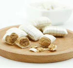拉條的過程就是讓糖膏在輥牀滾輪以及後續輪盤的壓力下“越走路越窄”,最後成功瘦身成細長的一條。