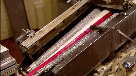 聖誕節特供的糖果,為了迎合節日氣氛,往往少不了紅白綠三色交替的“外套”。而這種圖案的製作就是從下面這一步開始的。